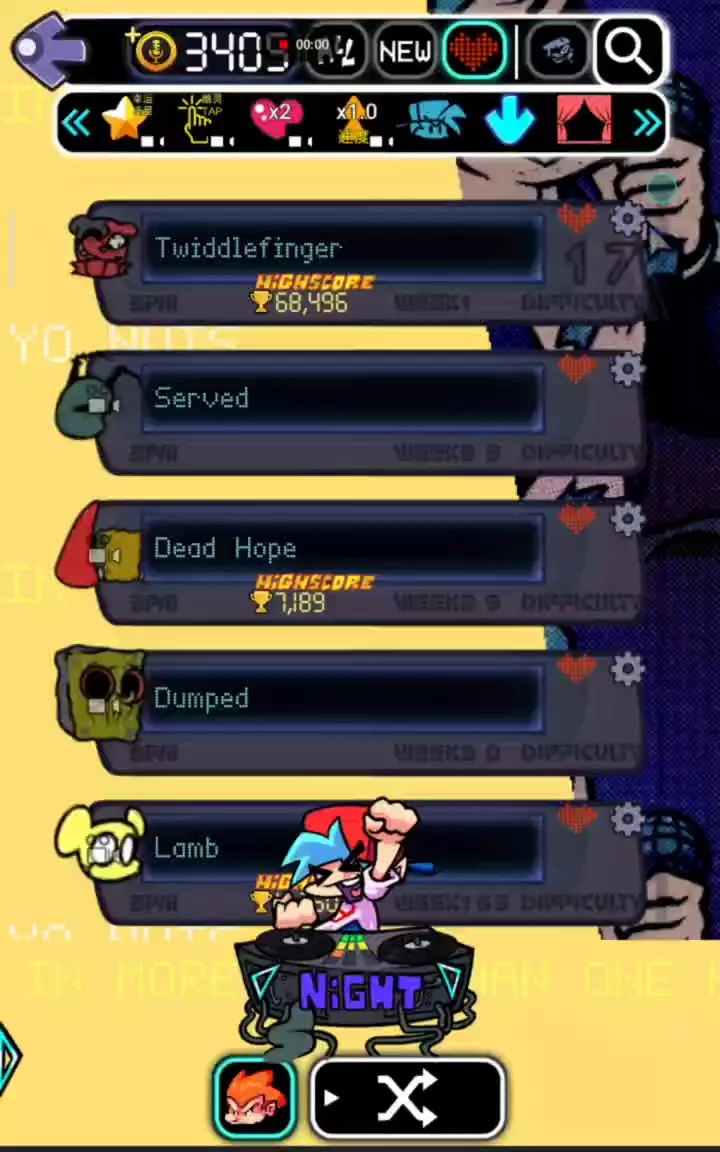 准备好进入周五之夜对决 - 抒情大乱斗 vs 旋转手指的时髦音乐冒险!男朋友和女朋友面对新的敌人 (Twiddle Finger,Silly Billy,Rotten Smoothie)在一系列激动人心的说唱战斗中,将您的技能推向极限。 在此模式中,您将扮演 BF 和 GF,通过朗朗上口的曲调和具有挑战性的关卡,每个关卡都旨在测试您的节奏和时间安排。《Twiddle Finger》为游戏带来了全新的氛围,新鲜的赛道和动态的关卡,让每场战斗都像是一种全新的体验。 主要特点: - 在充满原创曲目和节拍的激烈音乐对决中与 Twiddle Finger 正面交锋。 - 探索充满活力的动画关卡,为游戏增添额外的兴奋感。 - 完善你的时机和反应,击中每一个音符,在说唱战斗中取得胜利。 - 享受新鲜的配乐,为每场战斗带来新的节奏和挑战。 怎么玩: - 选择您的难度级别,然后选择 Lyrical Mayhem 模式。 - 跟随屏幕上与音乐节奏相匹配的箭头。 - 按下相应的琴键,准确地敲击音符并保持节奏。 - 通过比对手正确击中更多音符并保持健康栏来赢得战斗。 - 在模组中前进,对抗 Twiddle Finger 并征服所有关卡。 立即下载,证明您有能力击败 Twiddle Finger 并在这场音乐混乱中取得胜利!