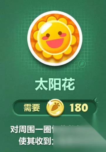 2、太阳花:群体攻击之王,范围性攻击模式,附带灼烧效果,攻击力高,攻击道具时可同时攻击怪物,实在是杀人越货必备神器。