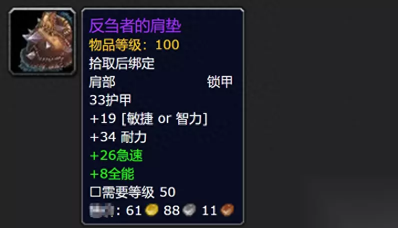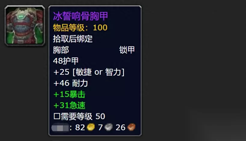 《暗影国度》的前夕,应该就是去诺森德刷精英怪,日常拿“银色嘉奖”换100装等的幻化,开启前夕任务的第二周,诺森德会20分钟刷新一个来自WLK副本的BOSS,一共有20只精英怪出现在冰冠堡垒周围。掉落的装等全是100级的紫色装备,包括武器、护甲、宠物、背包和饰品,上次我们说了板甲的装备,现在来看看掉落的锁甲装备外观。