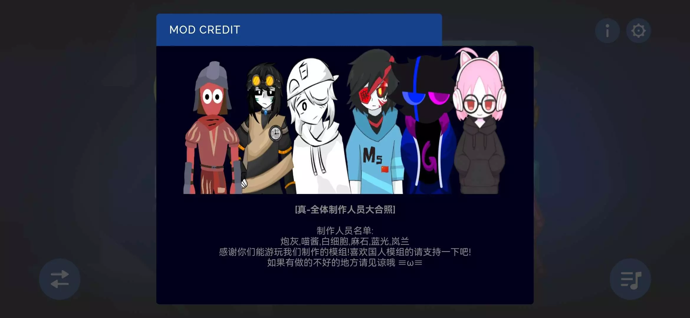 此模组作者为:炮灰,喵酱,白细胞,蓝光,岚兰