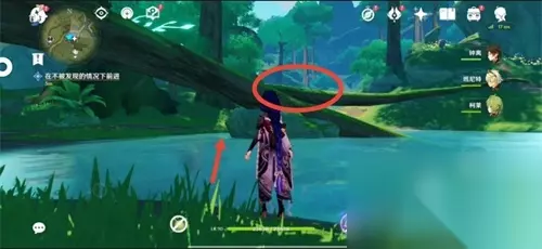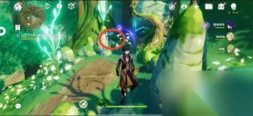 20、如果你还没拿到新芽迸发的曲调,你也可以携带普通的草种子,绕到下图所示(秘境背面)的这个位置击碎石头,也能打开通向秘境的路(这种方法时间卡得比较紧,建议不要尝试)。