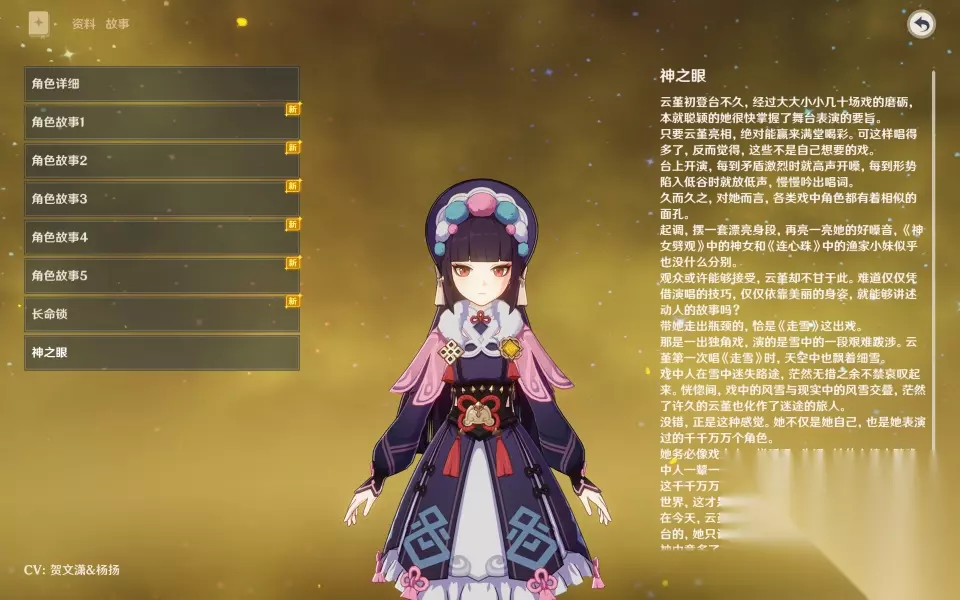 云堇的普通攻击动作设计非常漂亮,手感流畅。普通攻击共有五个阶段,其中后两个阶段有特别设计的收枪动作,配合戏曲音效,给人一种非凡的美感。同时,重击也有独特的收枪模组。普通攻击展现了戏曲风格,挥刀和回马枪的攻击也展现了刀马旦的气质。普通攻击的伤害倍率一般,辅助云堇的玩家可以选择不升级;对于真正喜欢云堇的玩家,可以考虑升级。 ●元素战技:旋云开相