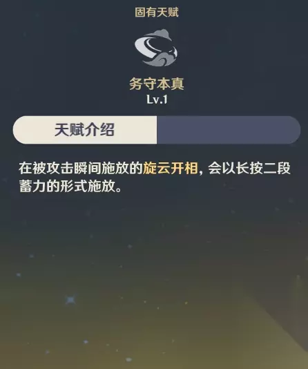 角色的技能倍率主要受到升级技能的影响,提高技能倍率的方式也比较单一。在正常战斗中,技能倍率通常表现为固定值,受到的其他因素相对较少。 班尼特提供的攻击力是额外的攻击力,需要与受作用角色的总攻击力相加来计算,在攻击区(即基础属性区)发挥作用。因此,增加攻击区数值可以提高基础倍率区间乘积的数值。 云堇提供的飞云旗阵能够增强受作用角色的攻击能力。具体来说,飞云旗阵的效果数值会与角色的“攻击力×普攻倍率”乘积相加。最终,这些效果会转化为“基础倍率区间乘积数值提高”。 ◆在当前很多情况下将“攻击力×技能倍率”视为“基础倍率区间”,这就使得云堇与班尼特的增幅效果同时触发时会出现稀释现象。 ●固有天赋:务守本真