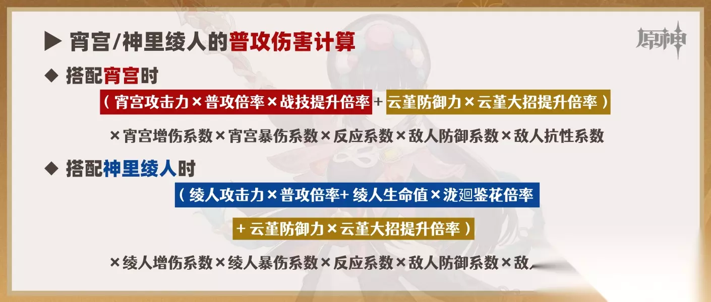 流浪者和宵宫的结算方式相似。它们的元素战技中的属性提升也属于额外的乘积系数,与宵宫中的“战技提升倍率”相同。