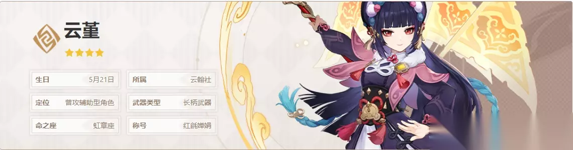 武器方面: 薙草之稻光、渔获、天空之脊等武器主要利用充能效率进行输出,但它们的技能特效不完全适合云堇角色。因此,建议优先考虑其他角色使用这些武器进行输出。 在群体战斗中,决斗之枪可以增加云堇的防御力上限,但需要较长的充能时间。因此,通常会将其作为输出类的玩法考虑。 对于云堇真爱党来说,最好选择护摩之杖、和濮鸢、决斗之枪等伤害输出型武器,然后利用元素爆发的效果来提高自己的普通攻击伤害,以此来体验站场玩法。 毕业套装优选「华馆梦醒形骸记」4件套,云堇处于后台时依旧可以触发该套装的防御力提升,进而提高「飞云旗阵」带来的普攻增幅幅度。 考虑到节省培养时间的需求,可以选择采用“华馆2件+绝缘之旗印2件”的组合方式。 当搭配火/水/雷/冰属性的输出角色时,可以考虑配备「悠古的磐岩」4件套装,该套装能通过施放技能时触发结晶反应并拾取,从而提高队伍内其他角色的伤害。 对于空之杯和理之冠这两个装备,建议选择提高防御力的主词条。在选择充能沙或防御沙时要考虑自身的充能效率。 当使用精5的喜多院十文字搭配时,建议将元素充能效率保持在200%左右;而对于其他的充能武器,推荐将充能效率保持在240%左右。 使用心得: 云堇是璃月戏曲表演家,也是一名长柄武器系岩元素角色。她的关键词包括“辅助”、“普攻增伤”和“可叹~~~”。虽然她是岩元素的辅助角色,但她可以辅助任何主C以普攻为主要伤害来源的角色,不限于元素属性。不过在游戏中这样的主C偏少,而且有些角色和云堇相性不太好,导致云堇目前的就业面比较窄,算是比较冷门的角色。综合来看,云堇专业辅助以普攻为主的角色,主要用于宵宫队和绫人队中解放班尼特或作为四岩队的辅助角色和充电宝。 云堇的角色机制,需要重点了解她的Q技能。她的A技能没有辅助机制可以忽略,而她的E技能可以进行点按和长按两种方式释放。她还拥有类似于北斗的盾反机制,当受到攻击时,使用点按E技能可以造成最高伤害。另外,长按E技能蓄力同样也可以造成最高伤害,同时提供护盾,因此在战斗中可以根据情况选择使用点按E技能快速释放并退场,或者使用长按E技能来抵御敌人的攻击。 云堇的飞云旗阵状态能提高驻场角色在攻击时的伤害值。这种增伤的机制类似于申鹤的E技能,属于【攻击/倍率乘区】。也就是说,它相当于为驻场角色提高了攻击力或倍率,但只能作用于普通攻击,不能作用于重击和下落攻击。 云堇的队伍体系主要服务于以攻击伤害为主要手段的角色,例如宵宫、绫人、物理菲谢尔和罗莎莉亚、物理刻晴、七七等,因此只要是依靠攻击伤害为主的角色都可以考虑使用云堇。 【编辑:233乐园】