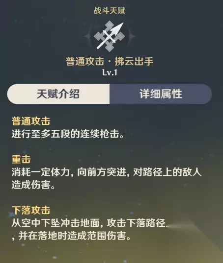 大家好,今天给大家带来的是【云堇】攻略 一、天赋介绍 ●普通攻击:拂云出手
