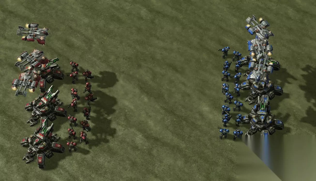 人族的内战最容易见到的情况无疑是双方互架坦克隔海相望,然后不断地利用空中视野和坦克射程来进行占便宜。正是因为人族坦克强大的防御能力,所以双方没有把握之前谁也不敢先手冲对方坦克阵,所以人族的一厘米架坦克能够互相玩很久,一直到有一方完全占据了优势,例如制空权的确认,或者是对方兵力没有自己多,只有这种情况下才会来一次大规模的决战,但是如果双方都是顶尖的人族选手,那么这个比赛就会十分好看了,双方会不断地开始进行骚扰强迫对方露出破绽,在交战时也是拼尽全力进行操作。所以人族的内战特点就是韧性大,双方很难有机会一击致命,往往需要打很久才可以。