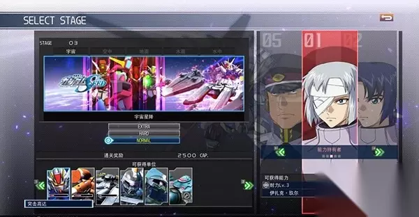 在《SD高达G世纪:火线纵横》游戏中,分为好几个篇章,这些篇章都是由动漫主体高达所引导的,其中就有高达SEED,这里就给大家分享一波《SD高达G世纪:火线纵横》机动战士高达SEED篇(宇宙星降) 任务攻略。 3.宇宙星降 可获得机体: 突击高达/梅比乌斯零式/大天使号/基恩(高机动)/维萨里号/伊莱杰专用基恩改 可获得技能: “MAP兵器效率化”、“物理兵器效率化”、“领导力”、“耐力”、“操纵技术” 可获得人物: “伊扎克·玫尔”、“尼哥尔·阿玛菲”、“迪亚哥·艾尔斯曼”、“穆·拉·弗拉格”、 “米莉亚莉亚·哈乌”、“芙蕾·阿尔斯塔”、“赛依·阿格伊尔”、“托尔·尼克希” 限定任务: 安堤米昂之鹰:使用“穆”的机甲击败5个敌方单位。 克鲁泽小队:在关卡中击败“伊扎克”、“迪亚哥”、“尼哥尔”操控的三个敌方机甲。