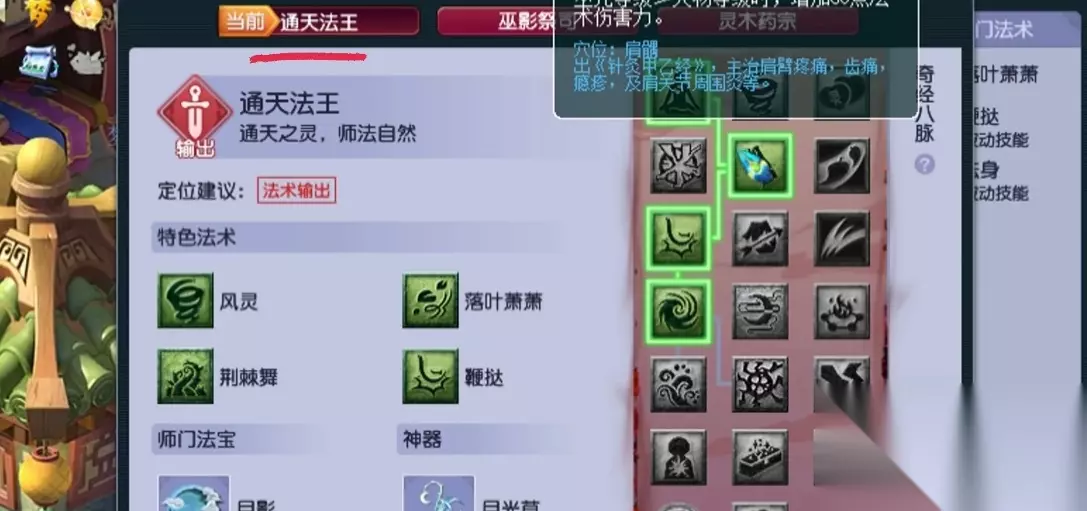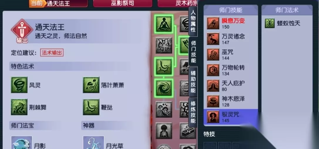 通天法王流派适合全智力加点的暴力输出,风灵层数叠起来后伤害非常可观。如果是偏辅助的玩法,可以选灵木药宗流派,药灵效果在团队中很有用。法宝方面神木宝鼎必带,能临时提升大量法伤。七宝玲珑灯在PK时很实用,可以解队友的异常状态。