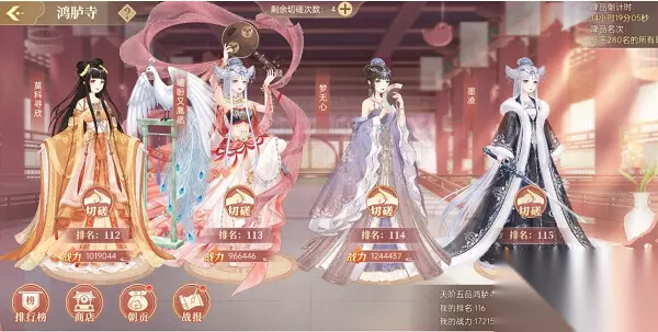鸿胪寺是和玩家宗祠品阶相关联的,不同宗祠品阶的主上分别进入相应品阶的鸿胪寺。鸿胪寺采取换位制,成功切磋名次靠前成员,则自己的排名和被切磋者发生对调。成员无法切磋名次比自己高50名及以上的对象