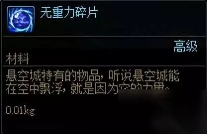 这个材料也十分经典,主要出产于悬空城副本。作为初代“砖厂”之一,不少勇士会选择满疲劳全图,只为了爆出墨竹手镯。久而久之,无重力碎片就越攒越多。其实在诺顿那里,可以接取重复任务,提交无重力碎片可以换取各色小晶块,不知道当年大家是不是嫌麻烦,直接扔商店了。