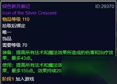 银色新月徽记 银色新月徽记,牌子装备。主动饰品。
