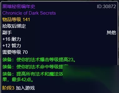 黑暗秘密编年史 黑暗秘密编年史,雷基冬寒掉落。高暴击、法伤副手。 武器的选择和搭配比较多样,首选是扎尔杜姆吞噬者的法杖,急速加成。其次是主副手搭配高法伤配装,副手可以使用食魂者宝珠,搭配大漩涡之怒或是审判之锤。 总结 暗牧P3阶段T6套装还是不错的不管从套装效果或是单件套装对续航的提升所以还是有必要凑齐4T6。可以使用散件的部位建议是选择腿部或是肩部替换。而且本身暗牧不缺命中属性所以装备搭配选择也相对比较轻松,有急速的装备都可以选择,将急速堆叠的比较高。以上装备推荐是参考WCL榜上各位暗牧大佬的装备和结合个人的一些理解选择的,当然还有很多的装备没有一一列举出来。大家还是要结合自身的属性及装备获取情况合理搭配调整配装。