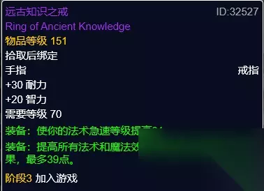 远古知识之戒 远古知识之戒,黑暗神殿小怪掉落。急速戒指。