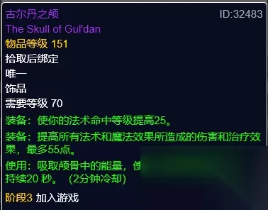 古尔丹之颅 古尔丹之颅,伊利丹掉落。主动急速饰品。