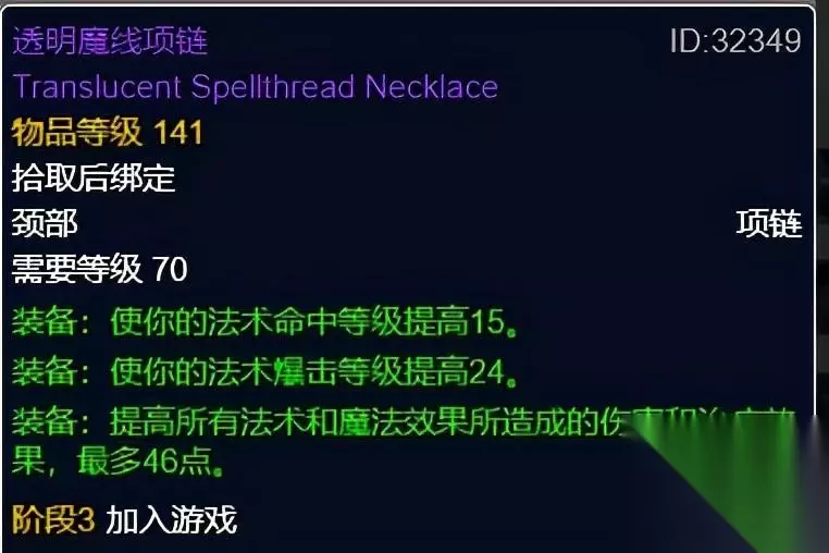 透明魔线项链 透明魔线项链,灵魂之匣掉落。无基础属性,命中、暴击、法术伤害加成。 项链选择比较简单首选雷特森的遗失吊坠,属性非常契合暗牧。其次选择透明魔线项链和太阳之王的符咒,虽然不如雷特森的遗失吊坠伤害直接但总体属性更高。 肩部