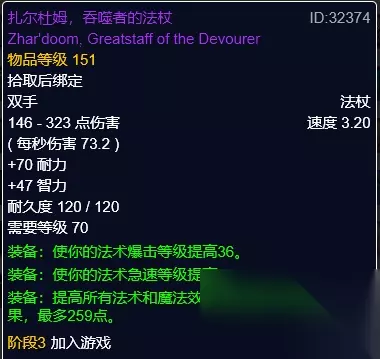 扎尔杜姆吞噬者的法杖,伊利丹掉落。急速、暴击属性。