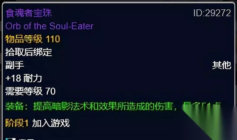 食魂者宝珠 食魂者宝珠,牌子装。暗影伤害副手。