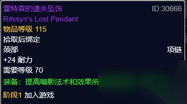 雷特森的遗失吊坠 雷特森的遗失吊坠,卡拉赞小怪掉落。暗影伤害项链。