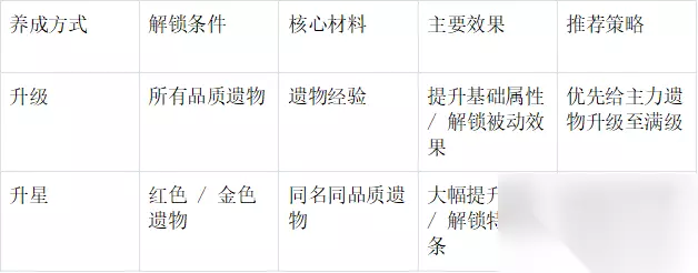 四、遗物养成策略 升级 vs 升星对比表