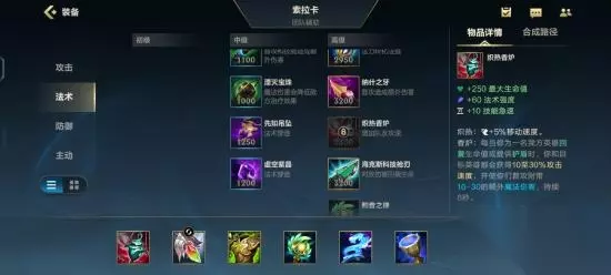 ps:前面在技能介绍当中也说明了关于治疗的问题,还是需要大家跟ad去沟通一下,让AD去带屏障,因为治疗效果对索拉卡的一技能强化是有作用。 四、出装~符文 1、出装