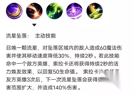 ps:一技能我之前在端游玩的时候,他这个攻击还是很容易躲开的,但是手机当中也是要注意,因为他这个流星打下去还是有一定的延迟,一定要适当的去瞄准使用,当索拉卡生命值为处于满状态的情况下,命中敌人会回复一定的生命值,这个技能还是蛮好用的,攻防一体命中敌人的话,也会造成伤害和减速效果,主要注意,一技能的命中率提高即可。而且一技能还有一个强化效果,但是需要治疗队友三次,也就是说用二技能治疗队友三次才能触发。强化的一技能会提高伤害和范围!【注:使用治疗术也算一次!】而且一技能探草丛也会显示敌方英雄! 3、2技能