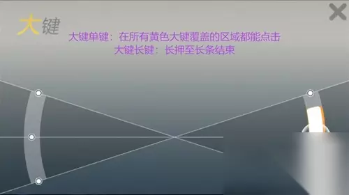 【大键】 大键单键:在所有黄色大键覆盖的区域都能点击 大键长键:长押至长条结束