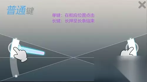 单键在相应的区域位置点击屏幕就能击中NOTE,击中的位置越靠近判定线获取的分数越高
