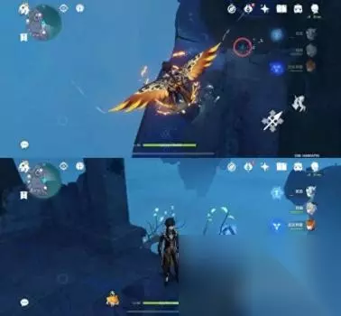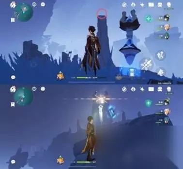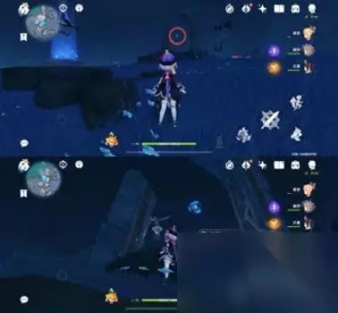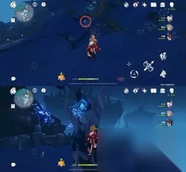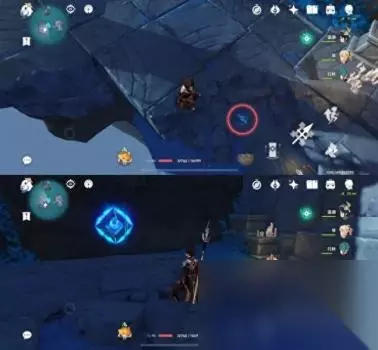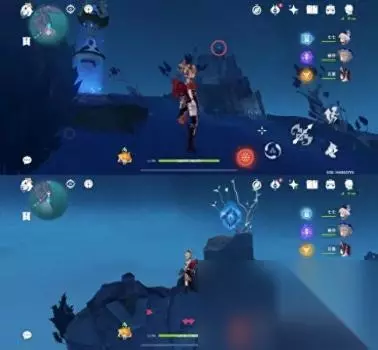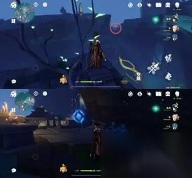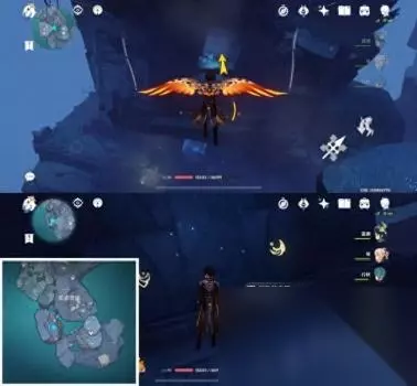 位置二 从悬崖上往下飞可以看到一个传送通道和很多丘丘人,键纹就在丘丘人中间,怪怪这里拿掉了所以就用文字代替下拉