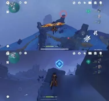 位置三 从上方传送点往下飞就能看到在废墟的上方,这边怪怪也拿掉了,键纹在废墟上方两个石块的中间