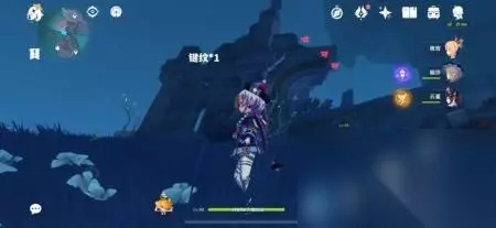 位置十 从最上方传送点一直往东面悬崖处走,可以看到一个高柱子上有一个键纹,飞过去在往上爬比较省体力,即可获得