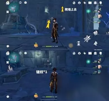 第二个需要完成世界任务【龙蛇藏归辑录】才能穿越过去拿这个键纹,题外话楼梯下面还有个华丽的宝箱喝仙灵