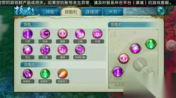 技能加点需分阶段调整,前期优先点满江南作为主力输出技能,中期补足祈福幻真增强生存能力。PK场景下秋波的控制效果至关重要,需投入足够技能点;副本场景则可侧重怜影的群体伤害。注意旧梦的驱散效果在对抗增益型敌人时有奇效,但不必过度投入技能点。属性加点建议力量与灵巧为主,体质为辅,确保输出与闪避的均衡发展。