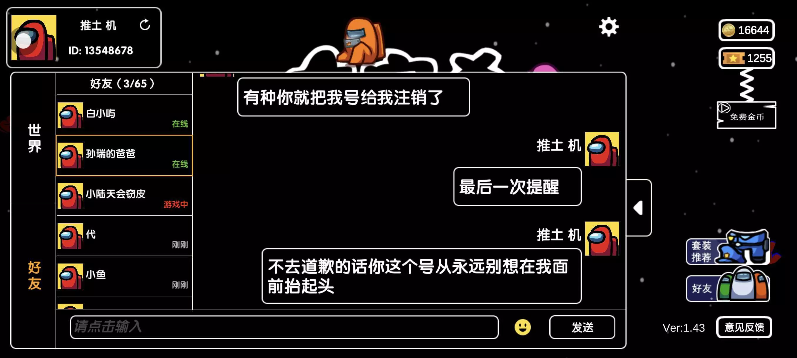 请各位玩家一同维护游戏氛围,友好发言,有则改之,无则加勉