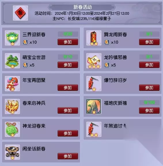 目前,《梦幻西游》电脑版2024年新春活动已经上线全服。本次活动分为环任务、小副本、挑战任务以及特色玩法,属于奖励一般、持续时间较长的节日活动。下面,就给大家带来本次活动攻略吧!