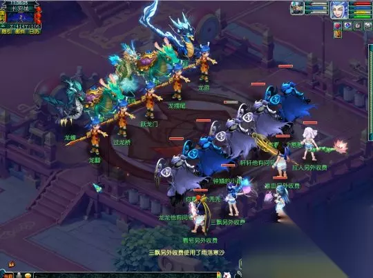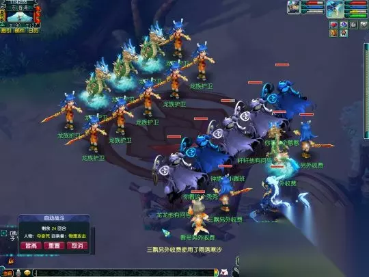 第一场战斗法伤较高,主怪会使用二龙戏珠,雷龙会使用水漫金山,虬龙则是使用天罗地网,如果是硬件较弱的小伙伴需要注意回复并接起罗汉!