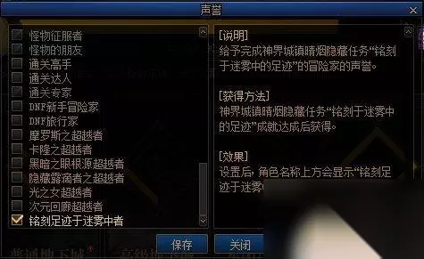 完成任务并领取对应成就,即可获得名誉称号[铭刻足迹于迷雾中者]
