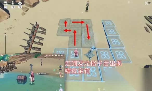 再次沿着下图路线走到发光格子处即可完成解谜,获得精致宝箱一个。