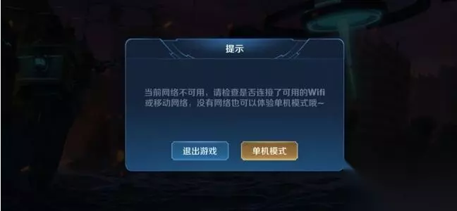 2、关闭网络 如果上面的方法不起作用我们可以关闭网络重启游戏,这样主界面就会弹出是否进入单机模式的选项了。