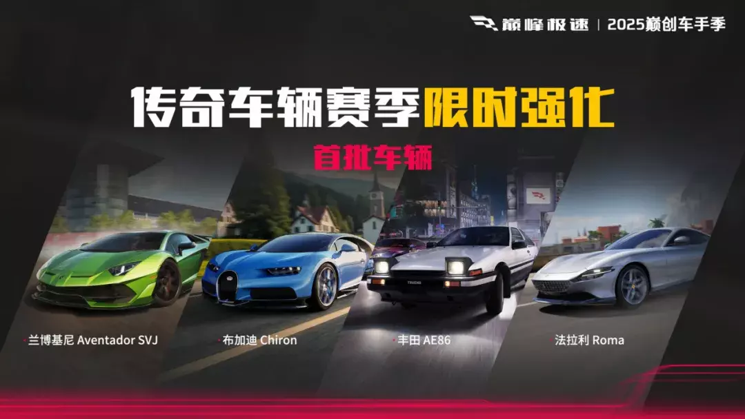 首批加强名单为 兰博基尼 Aventador SVJ 、布加迪 Chiron 、丰田 Sprinter Trueno GT-Apex (AE86)、法拉利 Roma,快来看看有没有你的本命车!
