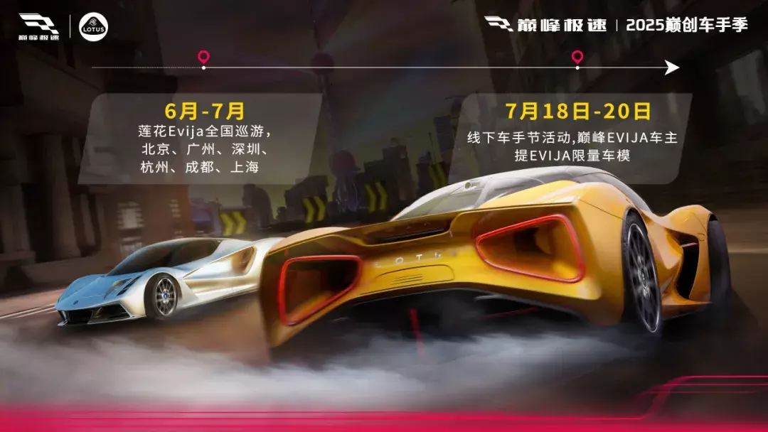 巅峰极速 × 莲花跑车:Evija真车空降!六城巡游同步开启!