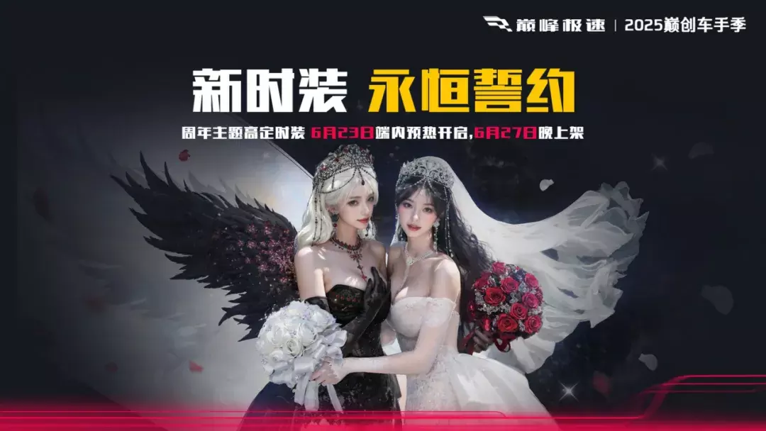 《巅峰极速》首款全服限量时装“永恒誓约·华彩”将于6月27日正式上线,还有全新高定级时装“永恒誓约”与你相见!