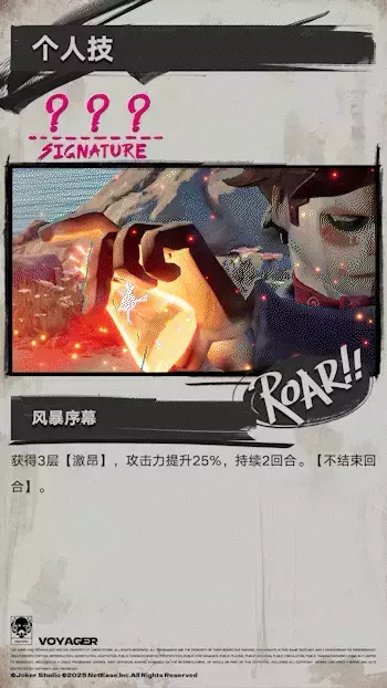 获得3层【激昂】,攻击力提升25%,持续2回合。【不结束回合】。