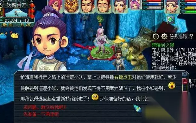 5.完成下面环节,紧接着从大唐境外花丛传送至妖怪巢穴,接下来会有一个扔锤子小玩法,建议玩家走下路,一般下路怪物较少一些