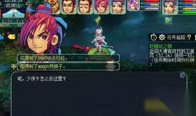 二、隐藏任务 1.在完成BOSS战后,玩家去大唐官府(52,24)领取隐藏任务。然后去神木林找到NPC对话后,去普陀山找卫凝姿触发战斗。