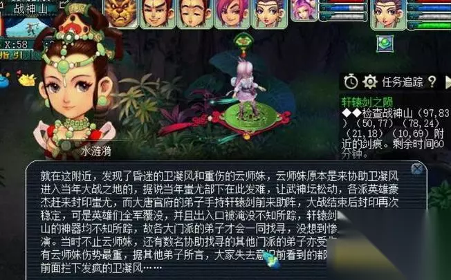 3.战斗结束后,找观音姐姐对话,然后回到大唐官府找卫凝风与其对话,紧接着回普陀山水涟漪,带水涟漪去战神山检查剑痕触发第二场战斗