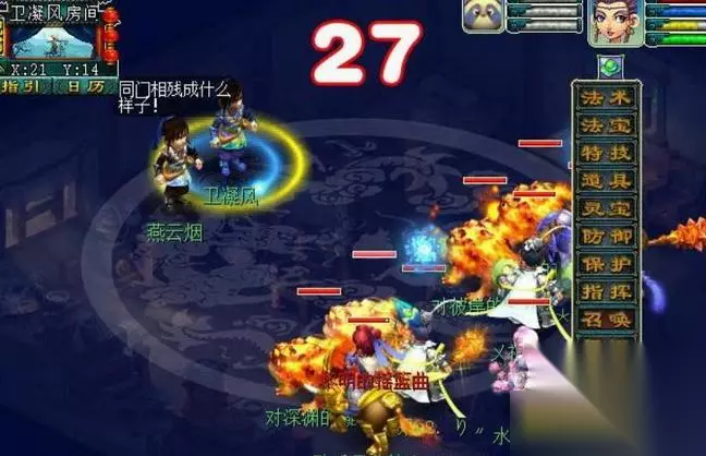 17.进入战斗后,一直防御3回合,第3回合,卫凝风会召唤燕云烟,此时封系立即封印卫凝风,因为当回合燕云烟会击飞陈潇然,此时卫凝风就会横扫我方单位,封印后省耐久。当燕云烟击飞陈潇然和卫凝风后,就会逃跑。