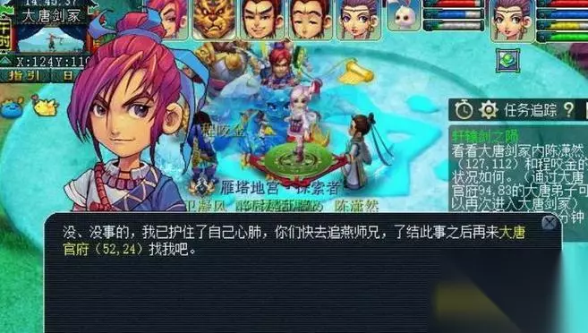 18.回到大唐官府,再次进入剑冢,此时跟陈潇然对话会触发一段剧情动画,剧情动画结束后,玩家点击倒地的卫凝风,与其对话后在神器任务结束后,去大唐官府找他可以领取隐藏任务。