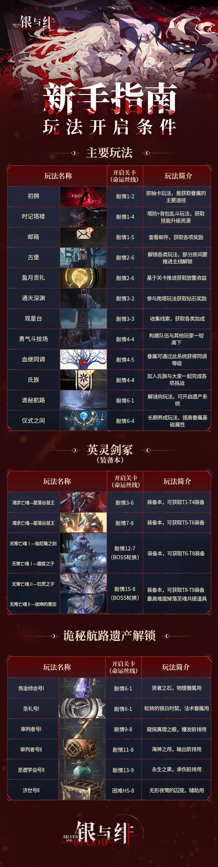 在《银与绯》中,随着主线关卡的推进会逐步解锁相应的玩法。今天给大家整理一份各玩法开启条件清单,帮助大家更好的了解游戏。