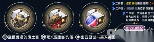 3、主词条还是以攻击和双爆增伤为主,如果是真理单c的队伍,鞋子可以带出速度,能让真理放更多次战技。托帕队伍鞋子就带攻击力就行。 4、副词条上双爆优于速度优于攻击力。 5、其实对于真理医生的遗器方面,能选择的方案是很多的,主要还是看队伍更适配哪一套,这就要玩家自己去思索了。 崩坏星穹铁道托帕遗器配装方案分享 1、因为托帕最常用的队伍就是和真理一起组双c,所以这一套遗器是最好用的,提供直接的属性加成。
